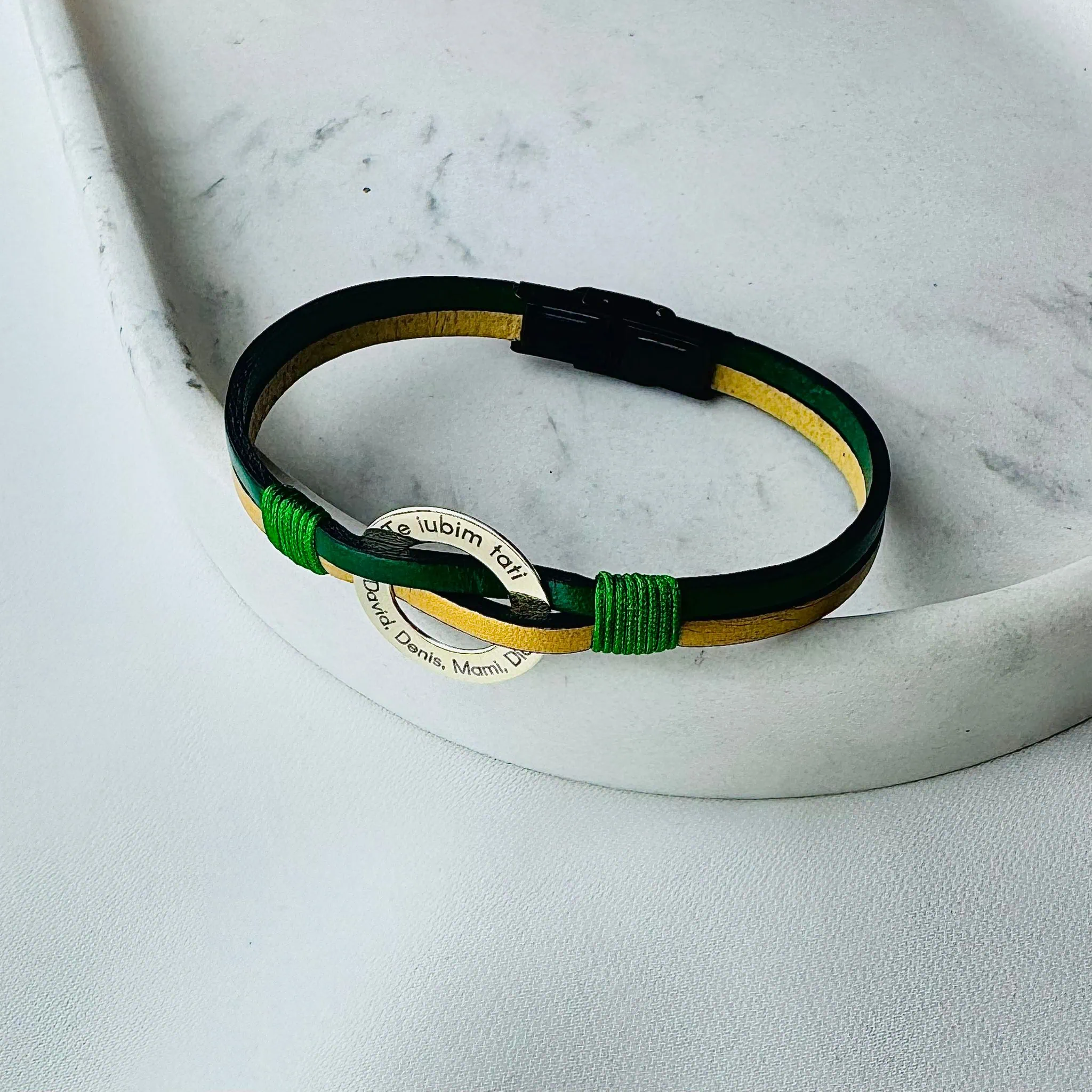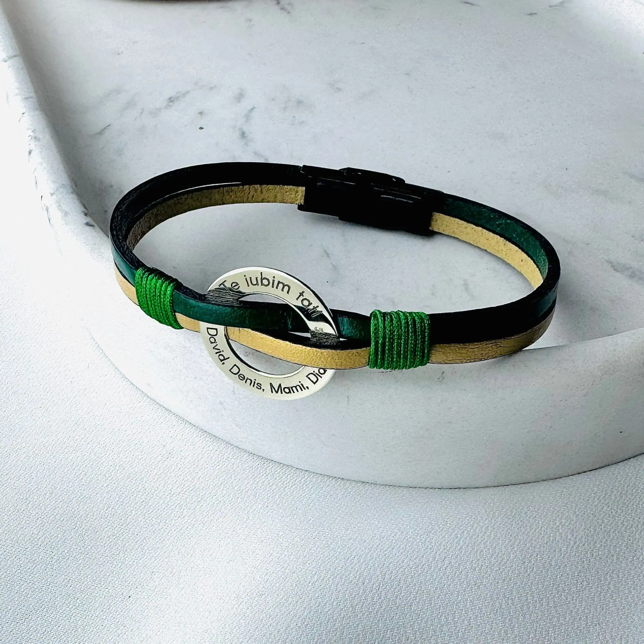 Comanda Bratara bicolora fixa din piele si Disc Aur 14k si adauga un accesoriu elegant si personalizat colectiei tale! Discul personalizat poate fi gravat cu orice text doresti, de la numele tau sau al celui drag pana la o fraza sau o data importanta.