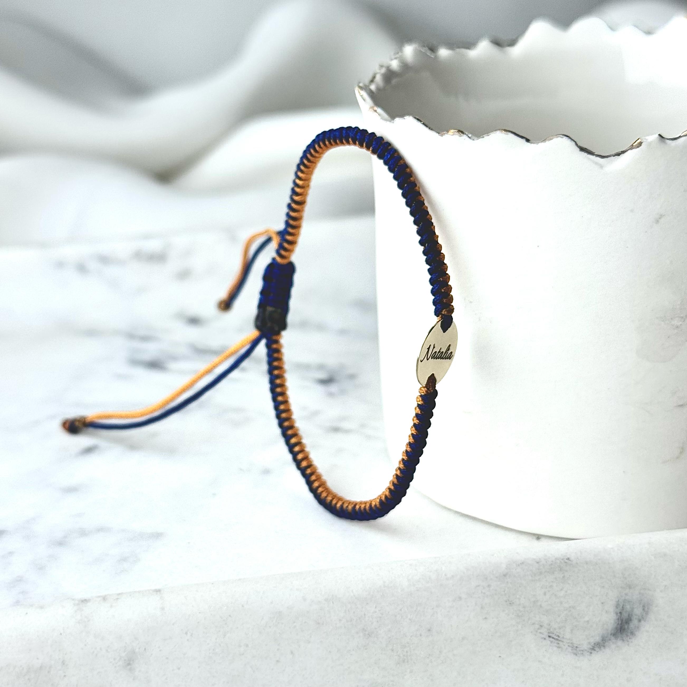 Bratara cu snur din matase, diverse culori si banut de 15 mm cu decupaj figurina fetita, este accesoriul pe care il poti purta cu orice tinuta. Il gravam  cu cuvantul dorit atat pe fata cat si pe verso