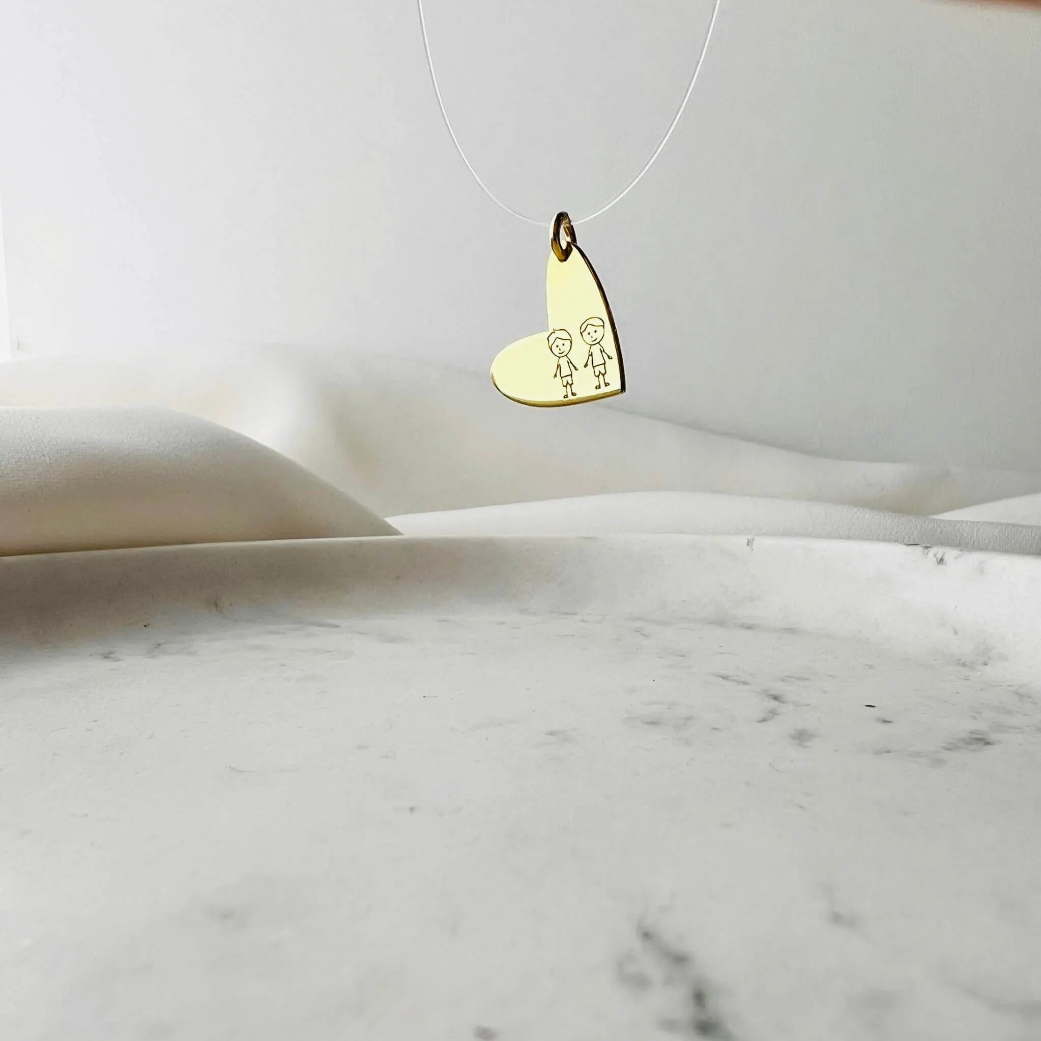 Adaugă o notă de rafinament și romantism ținutelor tale cu acest colier pe fir transparent cu pandantiv în formă de inimă. Delicat, modern și elegant, colierul creează un efect vizual spectaculos – pandantivul pare să „plutească” grațios pe piele, datorită firului invizibil.