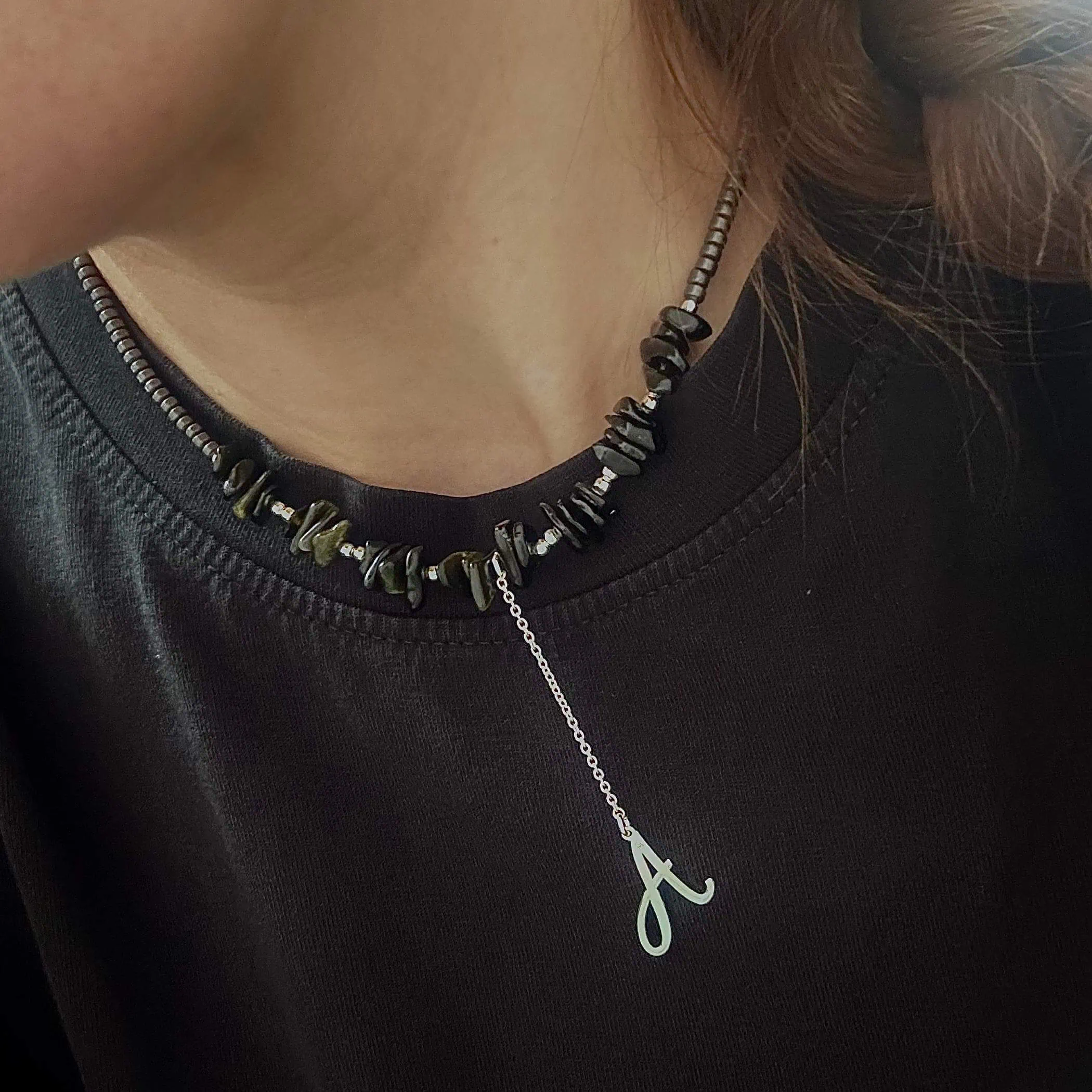 Colier mixt din chipsuri de Obsidian, Hematit și Argint – Eleganță naturală și protecție energetică